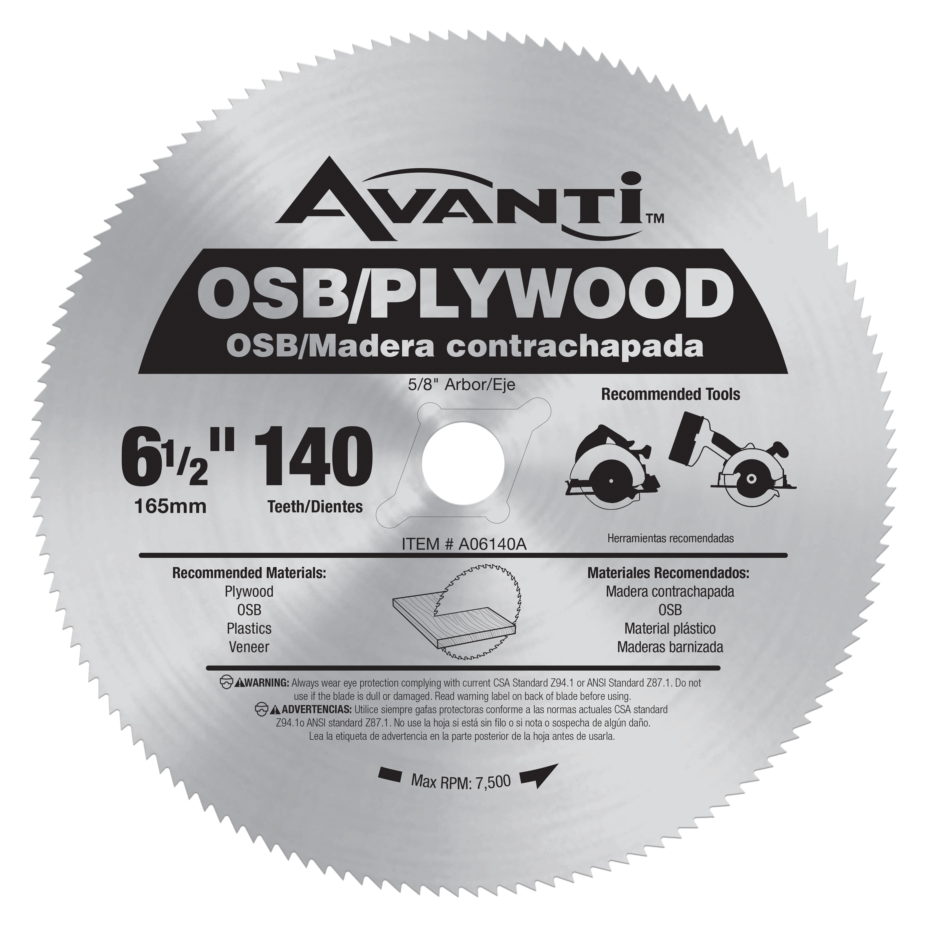 The Avanti 6-1/2 in. x 140-Teeth OSB/Plywood Circular Saw Blade has a high tooth count designed for clean cuts in oriented-strand board (OSB) and plywood. This high-quality steel blade is an economical choice that's well suited for household DIY projects and construction. Ideal for DIYers or remodelers who are using circular saws to cut wood.