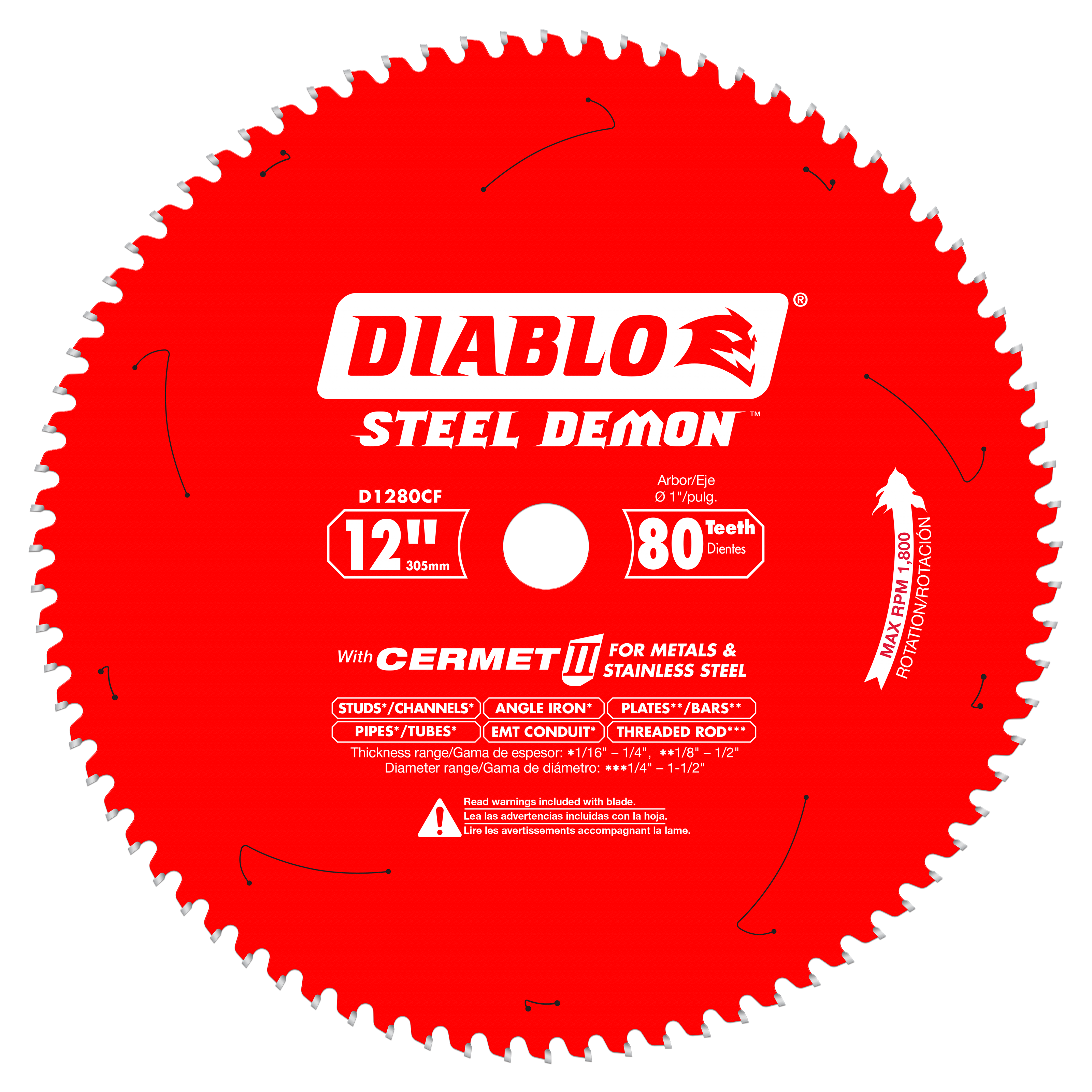 Diablo’s Steel Demon™ Cermet II saw blades are redefining metal cutting, and the jobsite, by introducing exclusive innovation for cutting metals and stainless steels with a cordless or corded circular saw. The specially formulated Cermet II teeth provide high heat tolerance and increased hardness for superior wear and life delivering up to 25X longer life, 50X cooler cuts and 10X faster cuts when compared to standard grinding discs. Featuring a special Triple Chip Grind and Perma-SHIELD® coating, these blades slice through the toughest of metals to produce precise, burr-free cuts with less sparks. A controlled cutting action produces larger chip sizes that generates less dust and airborne contaminates. The ability to cut through both metals and stainless steels eliminates the need for individually dedicated saw blades, offering a one-blade solution for the ultimate metal cutting performance and an unmatched value.
