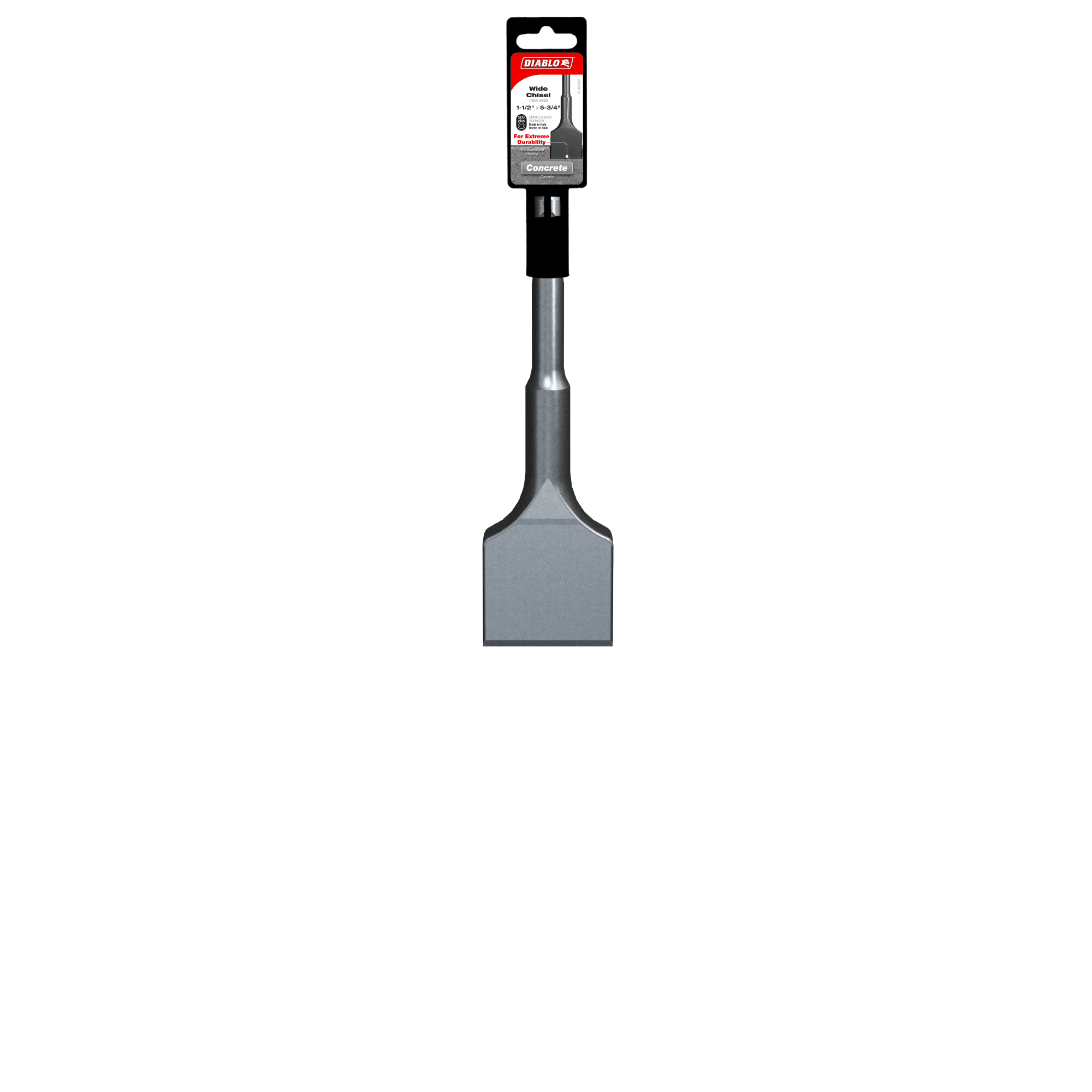 Diablo’s SDS-Plus Wide Chisels deliver extreme durability and stability in general demolition work, thin-set removal, cleaning concrete, and removing scale and rust. A unique heat treatment process strengthens the steel body to withstand the stress and impact of high-powered hammer drills in concrete. Bracing ribs deliver stability and rigidity required in demolition applications. Self-sharpening edge increases productivity and extends the tools life. Optimized for maximum performance in corded and cordless SDS-Plus rotary hammers.