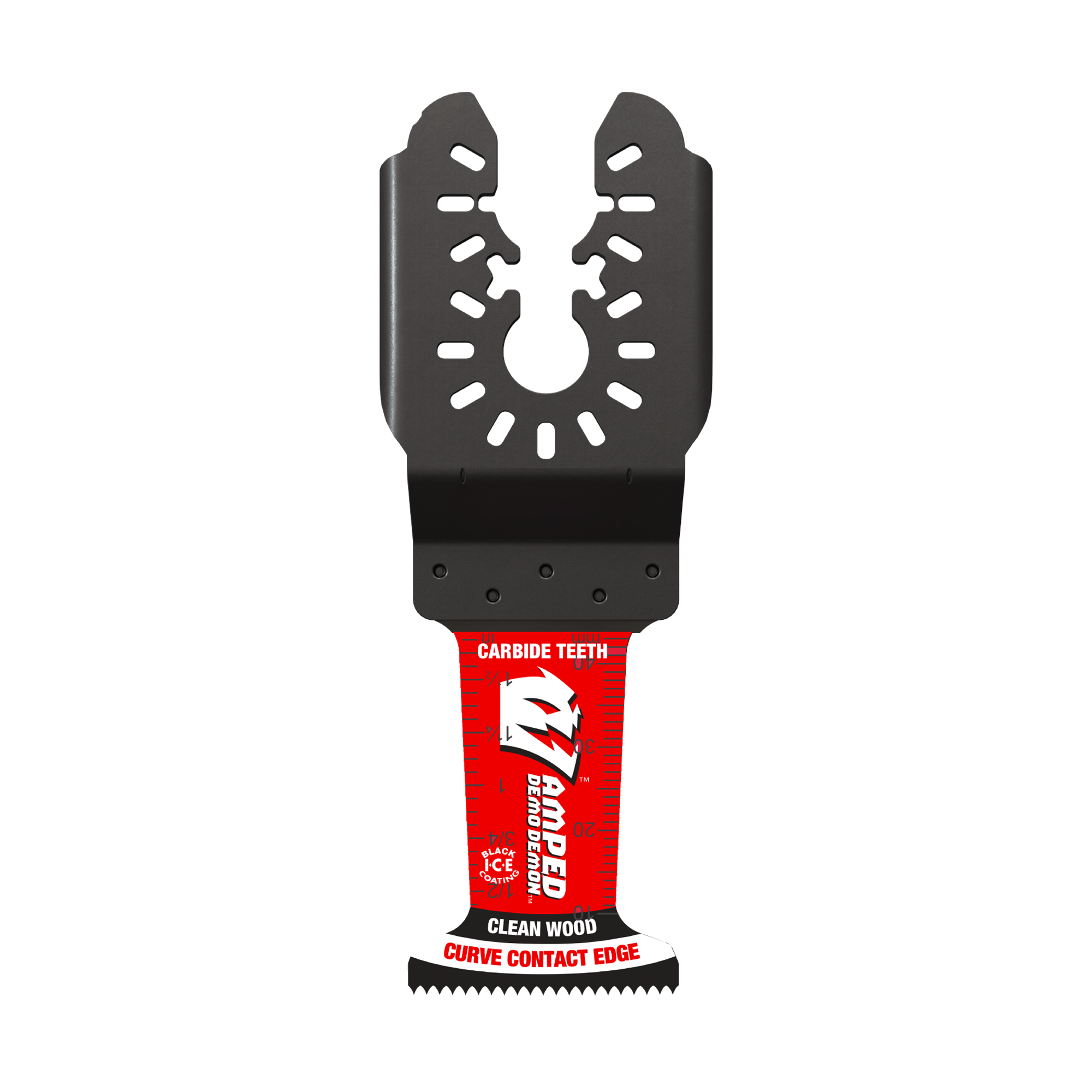 Diablo’s AMPED™ Demo Demon™ universal fit carbide oscillating blades feature application specific designs that deliver extreme durability, high quality finish, and superior cutting life in clean wood applications. High performance carbide teeth deliver an unmatched up to 50X longer cutting life versus standard bi-metal blades. Curve contact edge creates a pilot for precise, clean plunge cuts with less vibration while the Tracking Control design ensures straight and clean cuts. An optimized blade design and Black I.C.E. (Industrial Cooling Element) coating protects cutting edge against wear for extreme durability and longer blade life. The blade’s universal fit, adapter-free design easily attaches to most tools, except for Starlock tools.