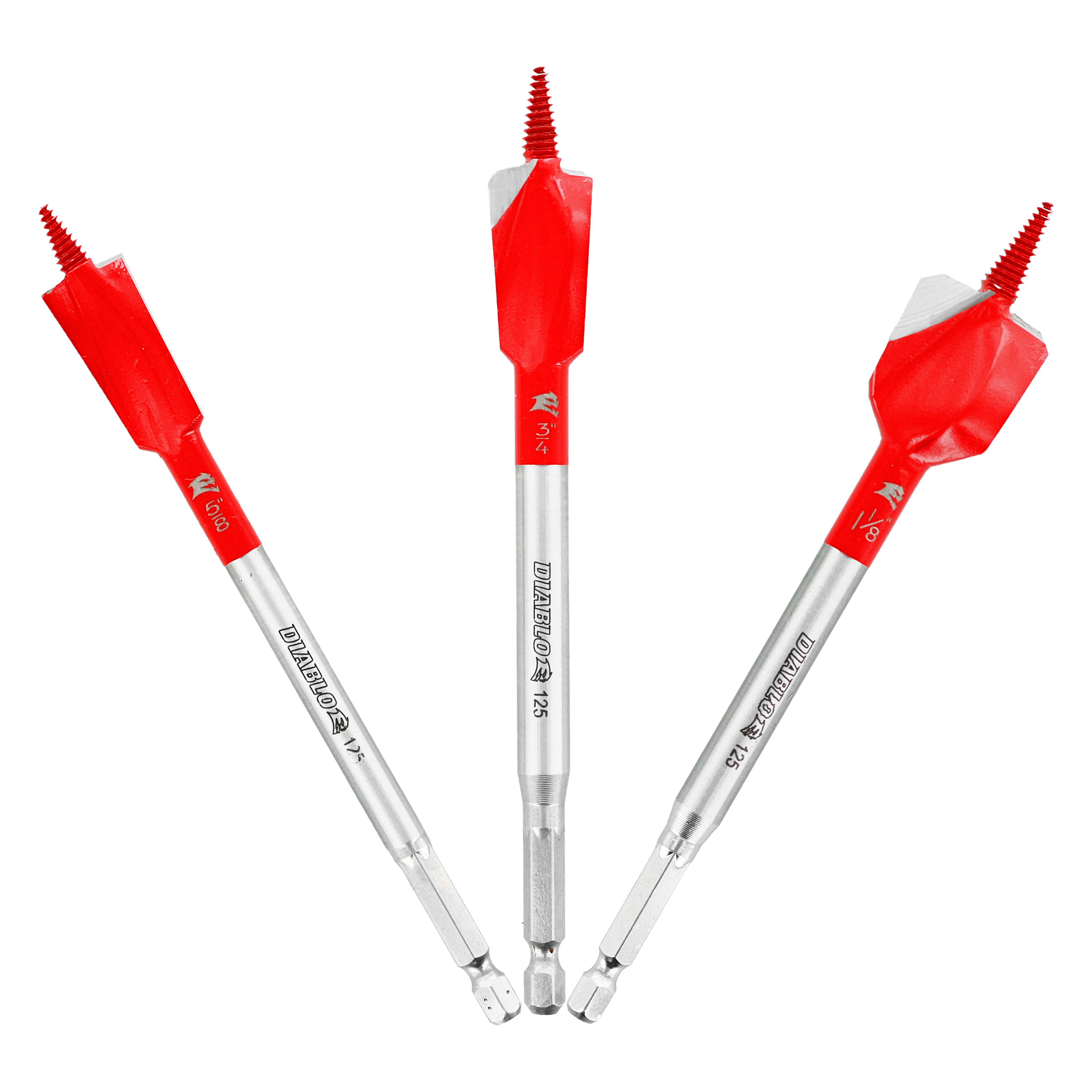 Diablo’s Demo Demon™ Spade Bits provide one of the most durable, effortless, and longest lasting hole drilling solutions on the market for nail-embedded wood. The DEMO-Edge™ dual cutting edges coupled with a self-feeding Dura-Tip™ power through nail hits for a smooth drilling experience and up to 60X longer life. An optimized curved paddle design enhances the chip evacuation process for more holes per charge. This range is Impact Strong™ for increased shank stability and durability in cordless and corded impact and drill drivers.